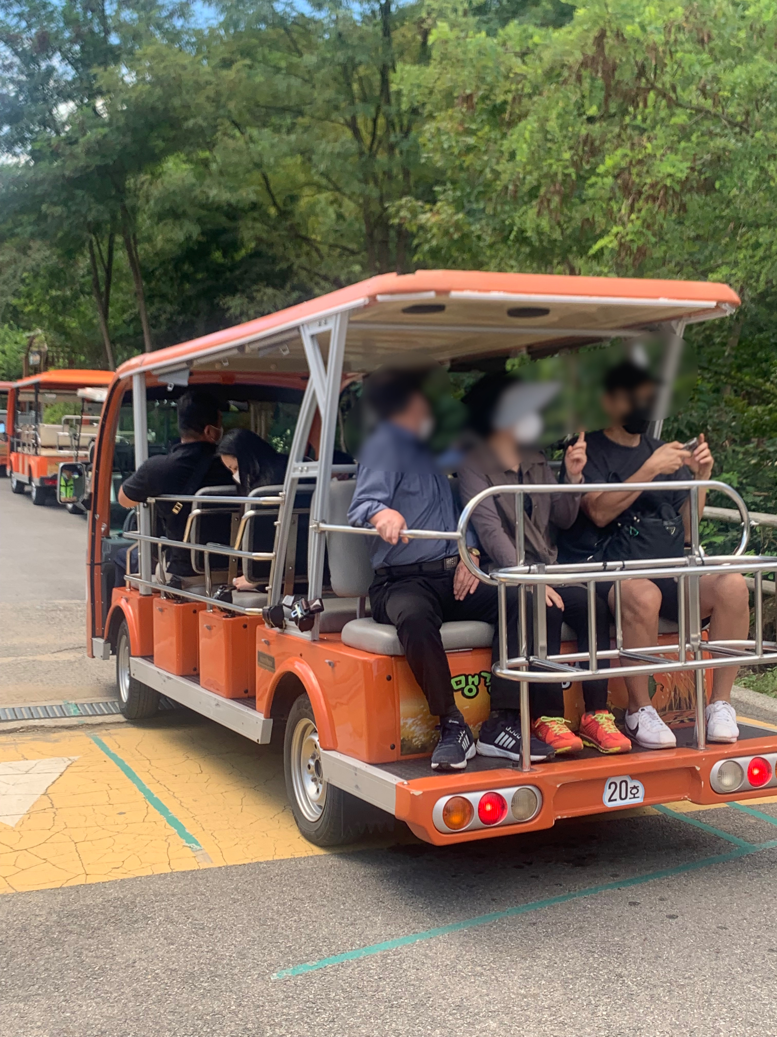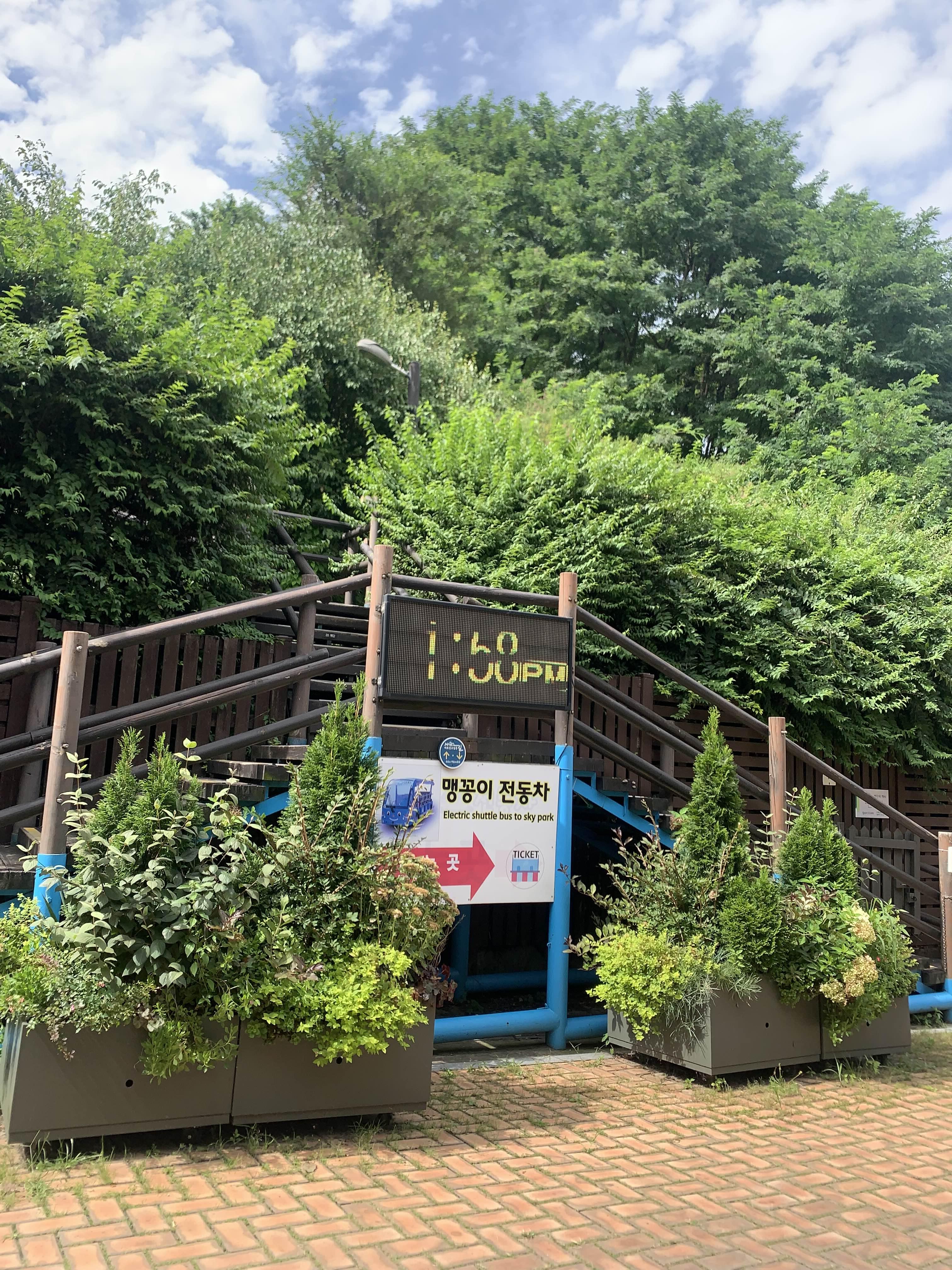 도보로 가기에는 살짝 힘들 수 있어서 편하게 공원까지 올라가고 싶은 분들은 추천 , 맹꽁이 전기차가 편하게 공원까지 데려다줍니다 하지만 주말의 경우 꽤 오래 기다려야 합니다 계속 운행을 하지만 이용하는 사람이 그만큼 많기에 9월 기준 20분 대기라고 했는데 지금은 더 오래 기다려야 합니다