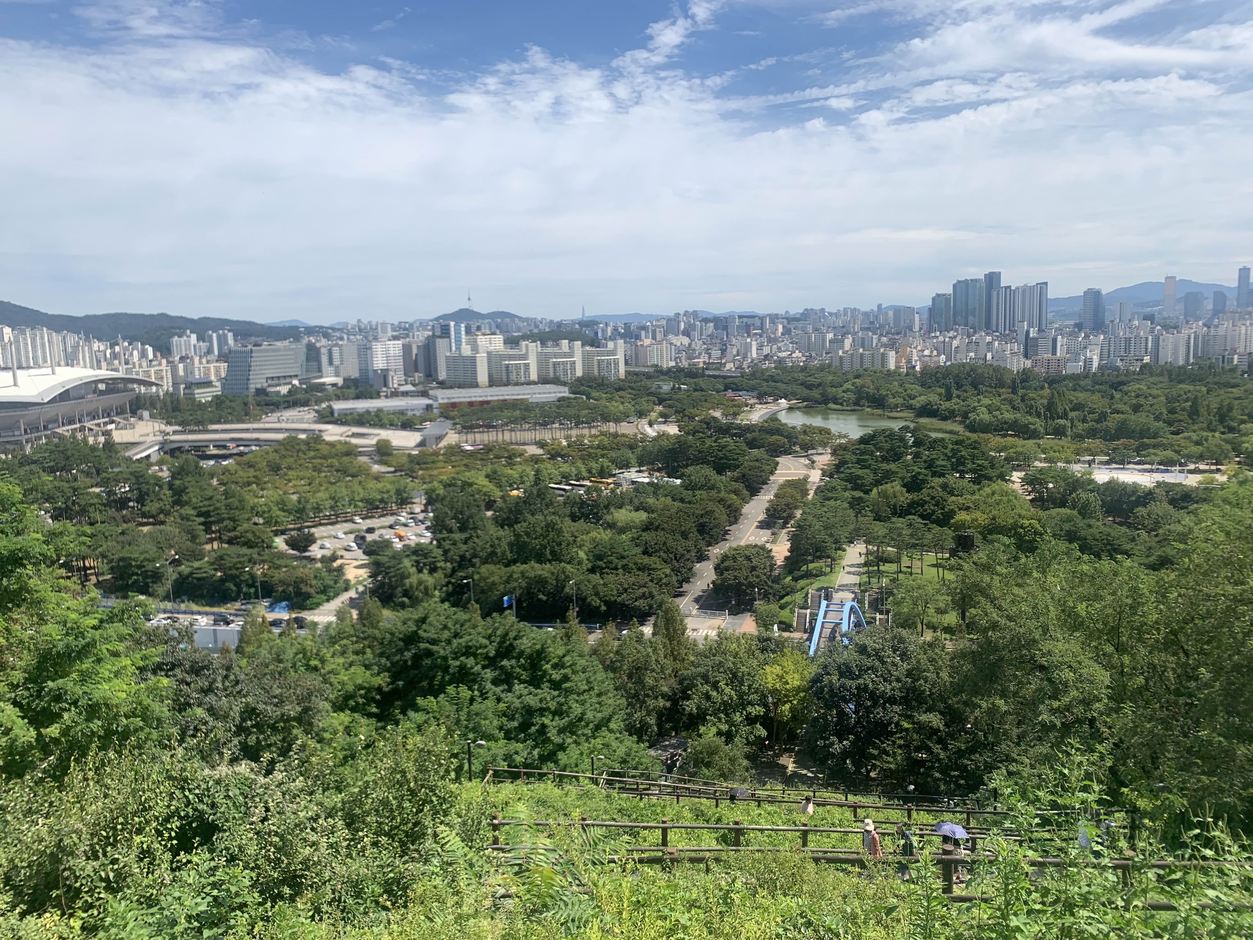 탁 트인 서울의 멋진 풍경을 내려다볼 수 있습니다 하늘도 정말 멋있습니다