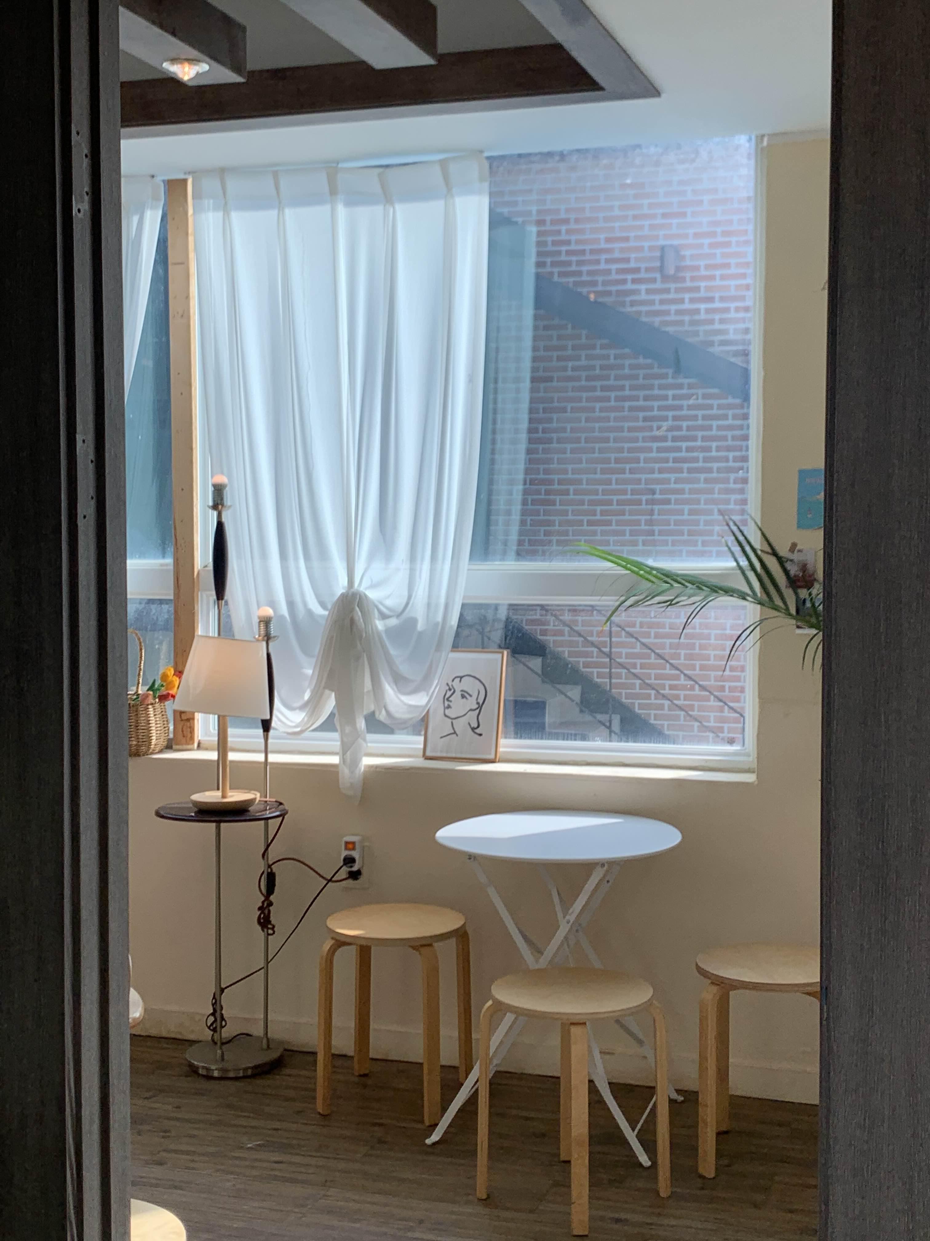 전체적으로 화이트톤의 하늘하늘한 분위기, 테이블, 의자도 매우 깔끔합니다