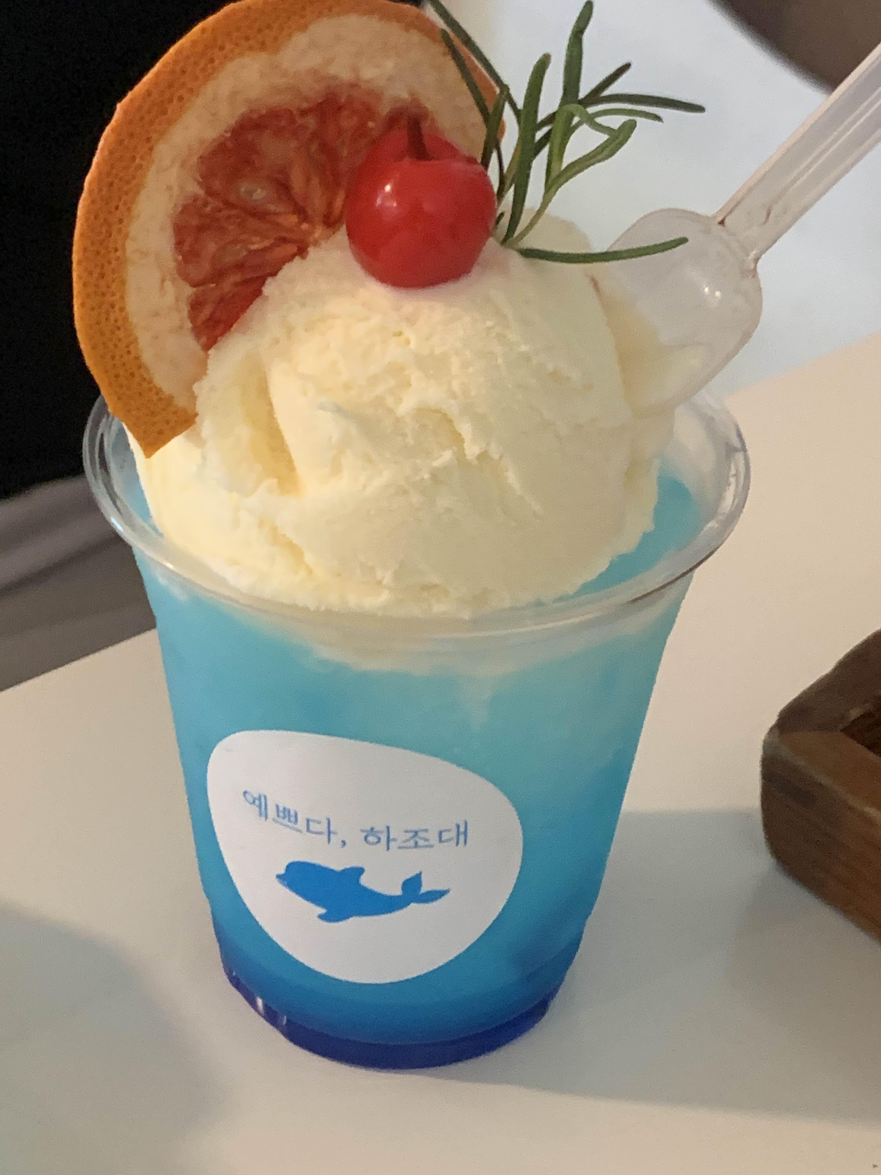 돌핀소다는 뽕따물 + 바닐라 아이스크림입니다 맛의 조화는 없고 따로따로 맛이 나서 추천드리지는 않습니다