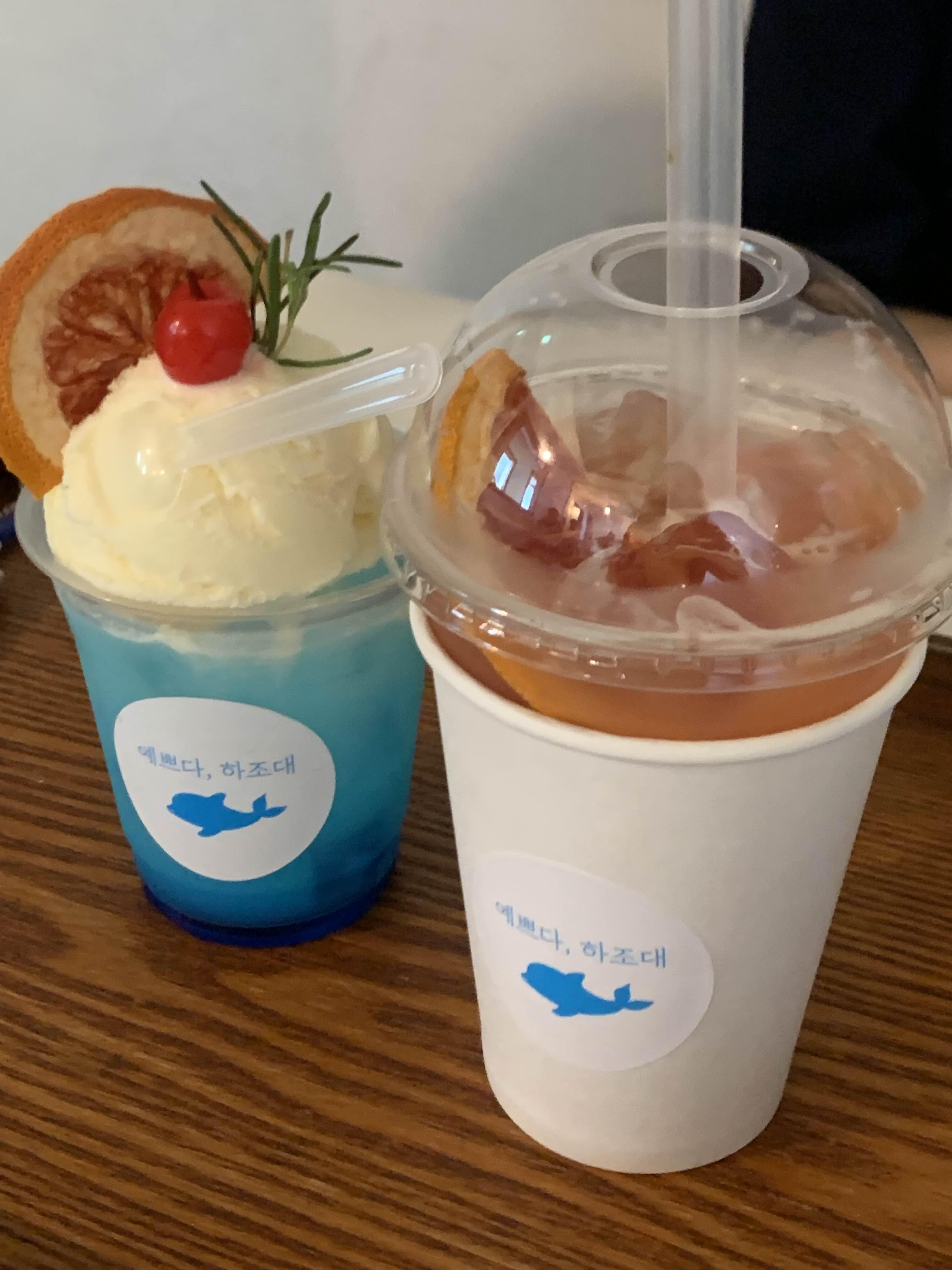 저녁시간이라서 커피는 패스하고 자몽 에이드와 시그니처메뉴인 돌핀소다를 주문합니다